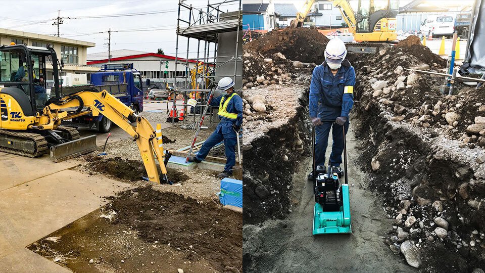 電気工事を行うのに付随する土木工事をさしています。電線を配線するための管路を設置するのに必要です。